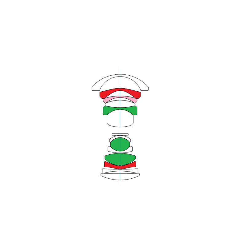 镜头结构采用2片非球面镜片和3片ED镜片